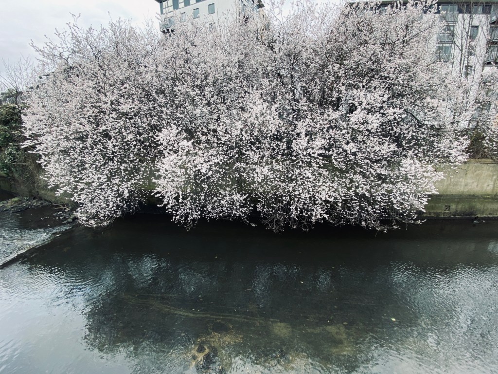 To connect to a visible river I cycled to Lewisham as part of my daily exercise. At Broadway Fields, I first saw the Ravensbourne River contained in a concrete channel adjacent to a bridge with the red DLR train passing overhead. Following the cycle route past the Blueprint for All centre and spotting the blossom trees in Brookmill Park. Steps invited me to get closer, as the river’s concrete backdrop was brought to life by illustrations. Cycling around the lake that contains water from the river, a heron sat aligned next to an information sign depicting it, so I moved closer to sketch it. Back at the river, I noticed a barrier of twigs and debris over the river, imagining it as a beaver dam, and I spotted the familiar form of a fox. As I sketched a section of the river, I saw a glimpse of a kingfisher. A child captured a clearer image by magnifying the bird, aligning binoculars with his camera. Other children were down by the water’s edge and thought I will come back and go there too.