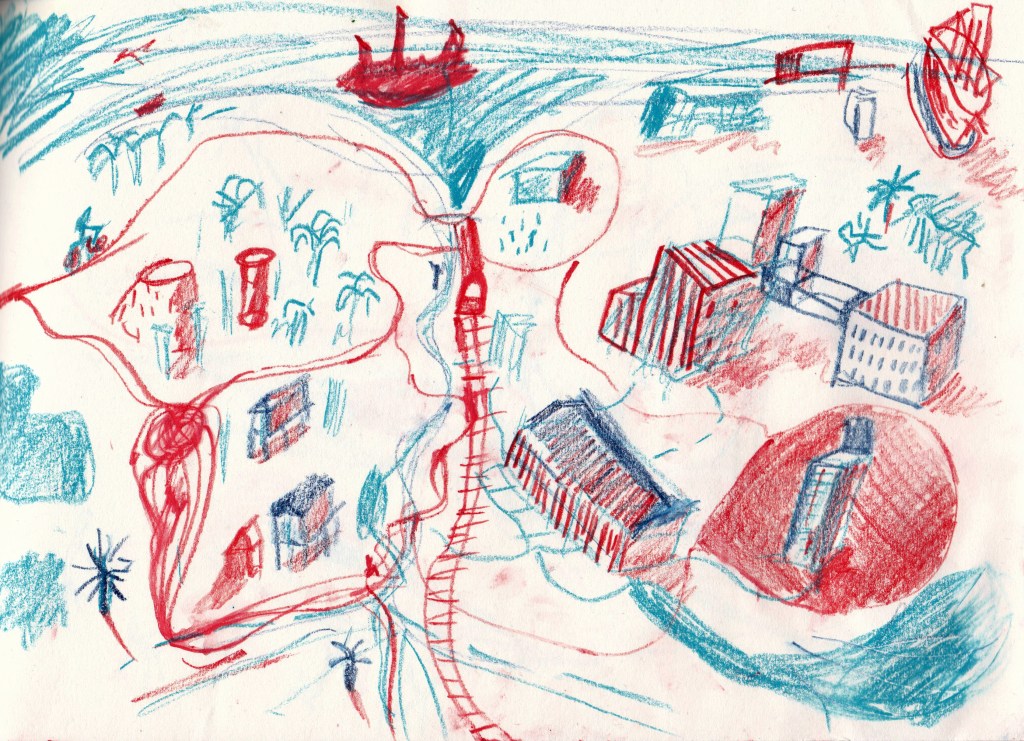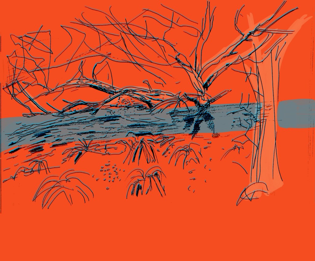 That weekend I drew a picture of the Creek and River whilst in the bath, an abstracted memory and fictionalised landscape.