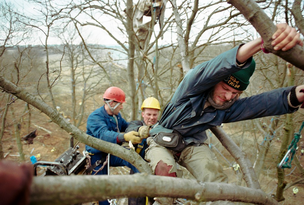 I was arrested at the Newbury bypass, when I was taken out of the Corsican Pine that was the tallest tree along the route. Just by being there, taking pictures and acting in a journalistic capacity, even showing my NUJ card, I was still arrested. The photographs from that specific Corsican Pine and the eviction of it were published in the Guardian Weekend Magazine.