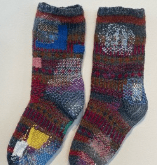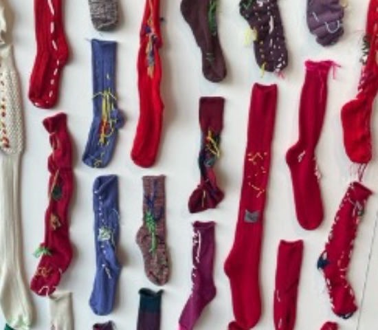 There are also much loved examples of the artist’s friends and family’s loaned socks that have been mended, often multiple times.